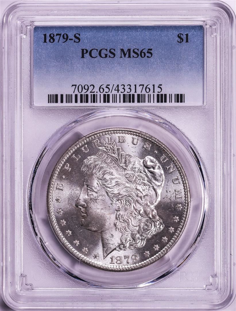 One 1879-S $1 Morgan Silver Dollar Coin PCGS MS65. PCGS Graded.