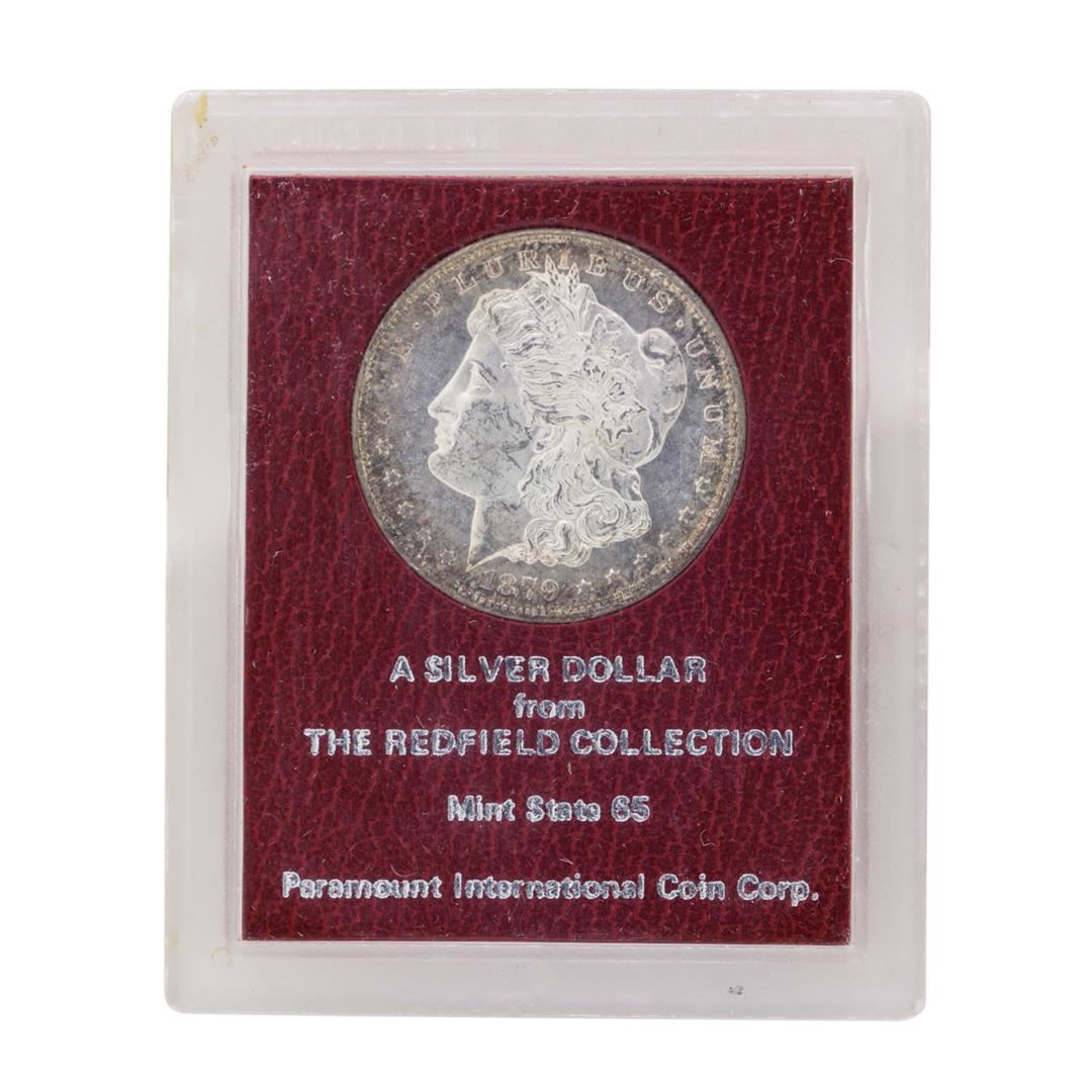 One 1879-S $1 Morgan Silver Dollar Coin Redfield Collection MS65.
