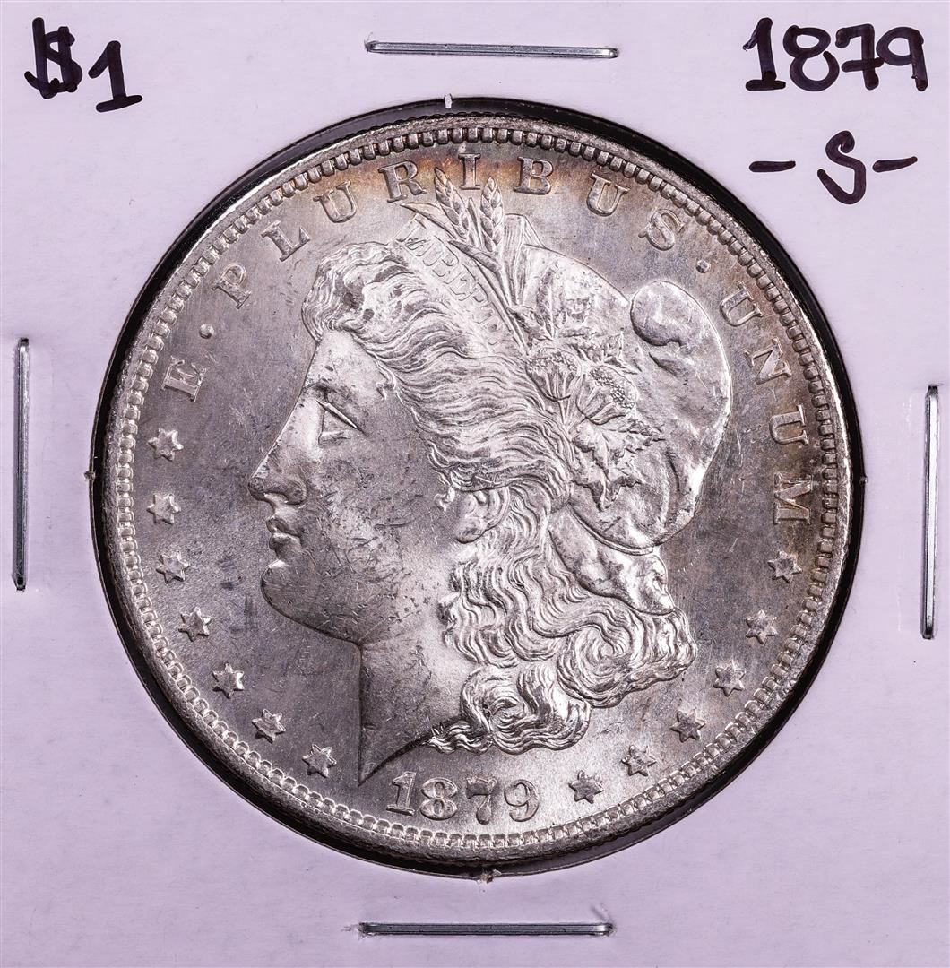One 1879-S $1 Morgan Silver Dollar Coin.