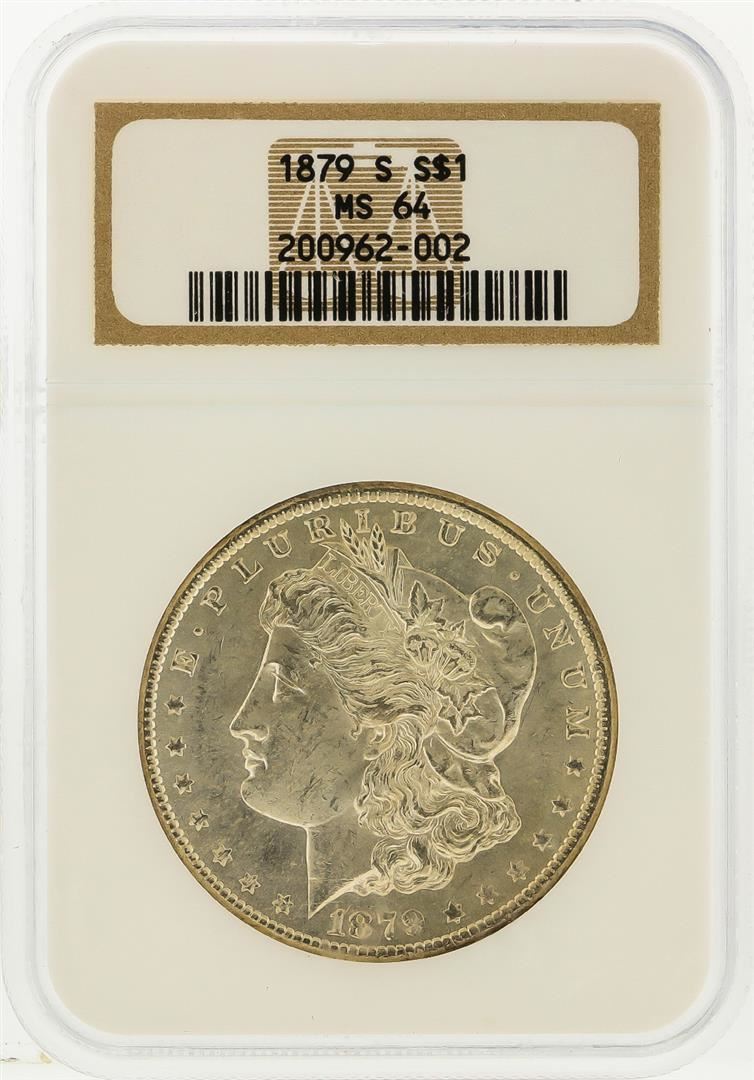 One 1879-S $1 Morgan Silver Dollar NGC Graded MS64. NGC Certified.