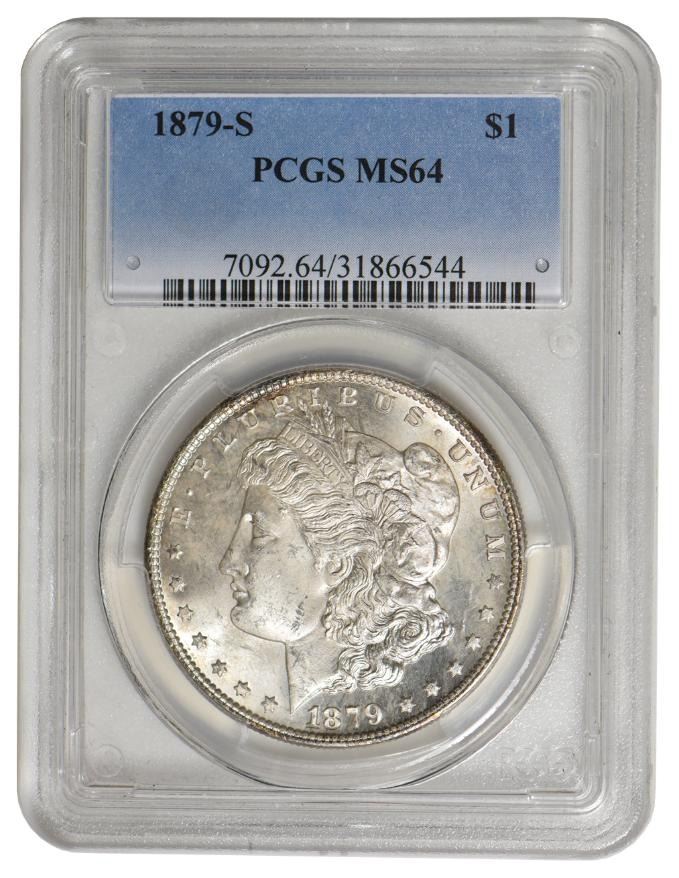 One 1879-S $1 Morgan Silver Dollar PCGS MS64.