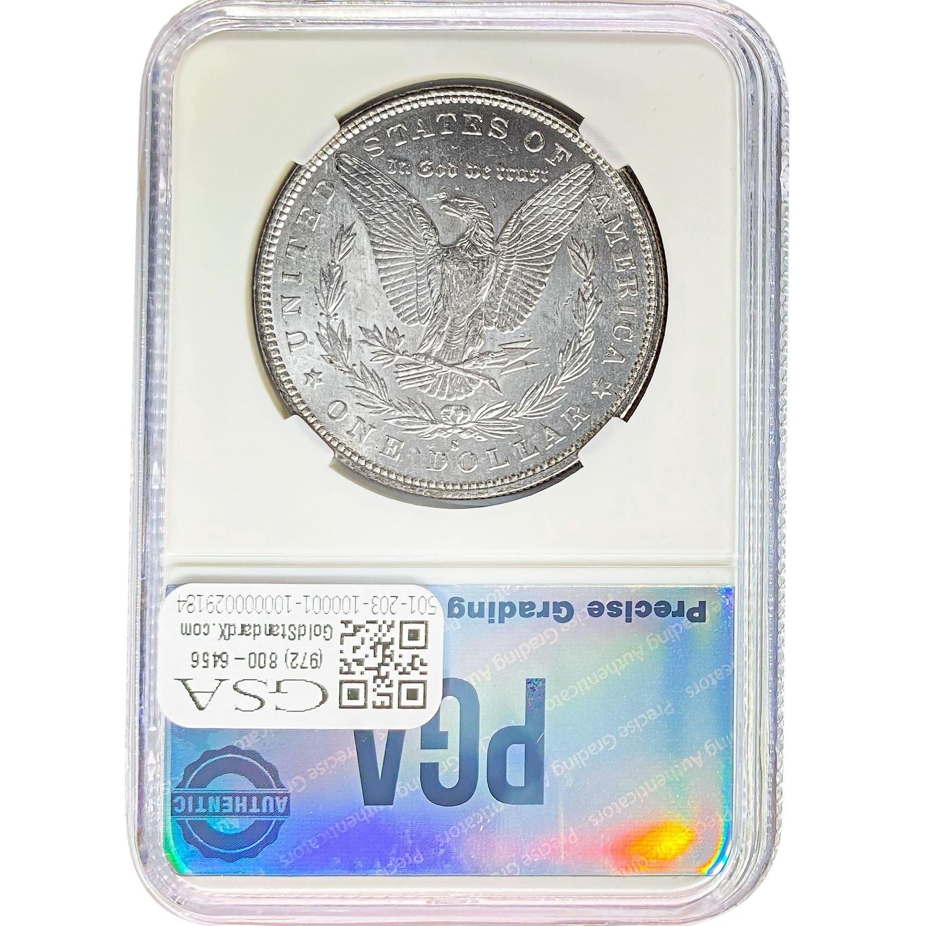 e. Coins sold referencing a third-party grading service are sold “AS IS” without any express or implied warranty, except for a guarantee by GSA that they are genuine. Removal or alteration of the holder, voids all of Bidder’s claims concerning that Product. Certain warranties may be available from the grading services and Bidders are referred to them for further details: Numismatic Guaranty Corporation (NGC), PO Box 4776, Sarasota, FL 34230, www.ngccoin.com/services/writtenguarantee.asp; Professional Coin Grading Services (PCGS), PO Box 9458, Newport Beach, CA 92658, www.pcgs.com/guarantee.html; ANACS, 6555 S. Kenton St., Ste. 303, Englewood, CO 80111; and Independent Coin Grading Co. (ICG), 7901 East Bellview, Ave., Suite 50, Englewood, CO 80111.