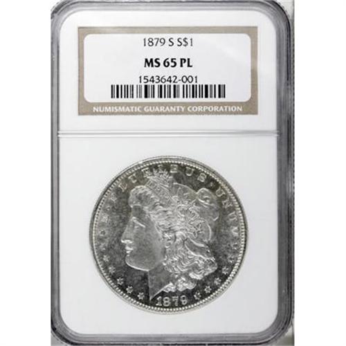 <B>1879-S $1 MS65 Prooflike NGC.</B></I> NGC Census: (986/369). PCGS Population (1039/316). Numismedia Wsl. Price for NGC/PCGS coin in MS65: $210. (#7093)<BR><BR><B>Coin Engraver:</B> George T. Morgan<BR><BR><b>Shipping:</b> Coins & Currency (<a target="_blank" href="http://www.heritageauctions.com/common/shipping.php">view shipping information</a>)