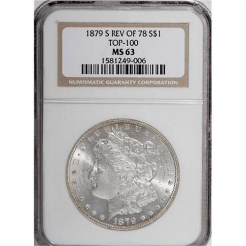 <B>1879-S $1 Reverse of 1878 MS63 NGC.</B></I> A Top 100 variety. NGC Census: (358/258). PCGS Population (595/522). Numismedia Wsl. Price for NGC/PCGS coin in MS63: $300. (#7094)<BR><BR><B>Coin Engraver:</B> George T. Morgan<BR><BR><b>Shipping:</b> Coins & Currency (<a target="_blank" href="http://www.heritageauctions.com/common/shipping.php">view shipping information</a>)
