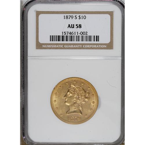 1879-S $10 AU58 NGC. NGC Census: (332/196). PCGS P