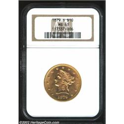 1879-S $10 MS61 NGC. A well struck and lustrous coin. Although lightly abraded, the surfaces appear.