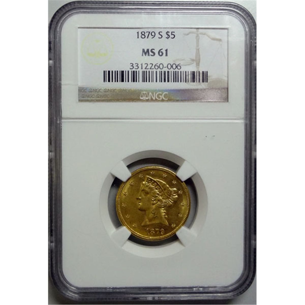 1879-S $5 LIBERTY GOLD COIN NGC MS-61 RARE!
