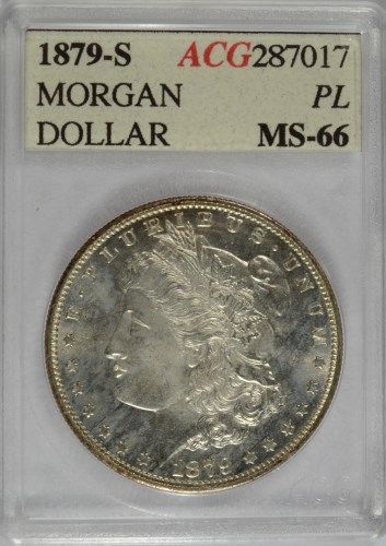 1879-S MORGAN DOLLAR ACG MS66 PL, WHITE, A VERY NICE COIN, AT LEAST MS65 QUALITY