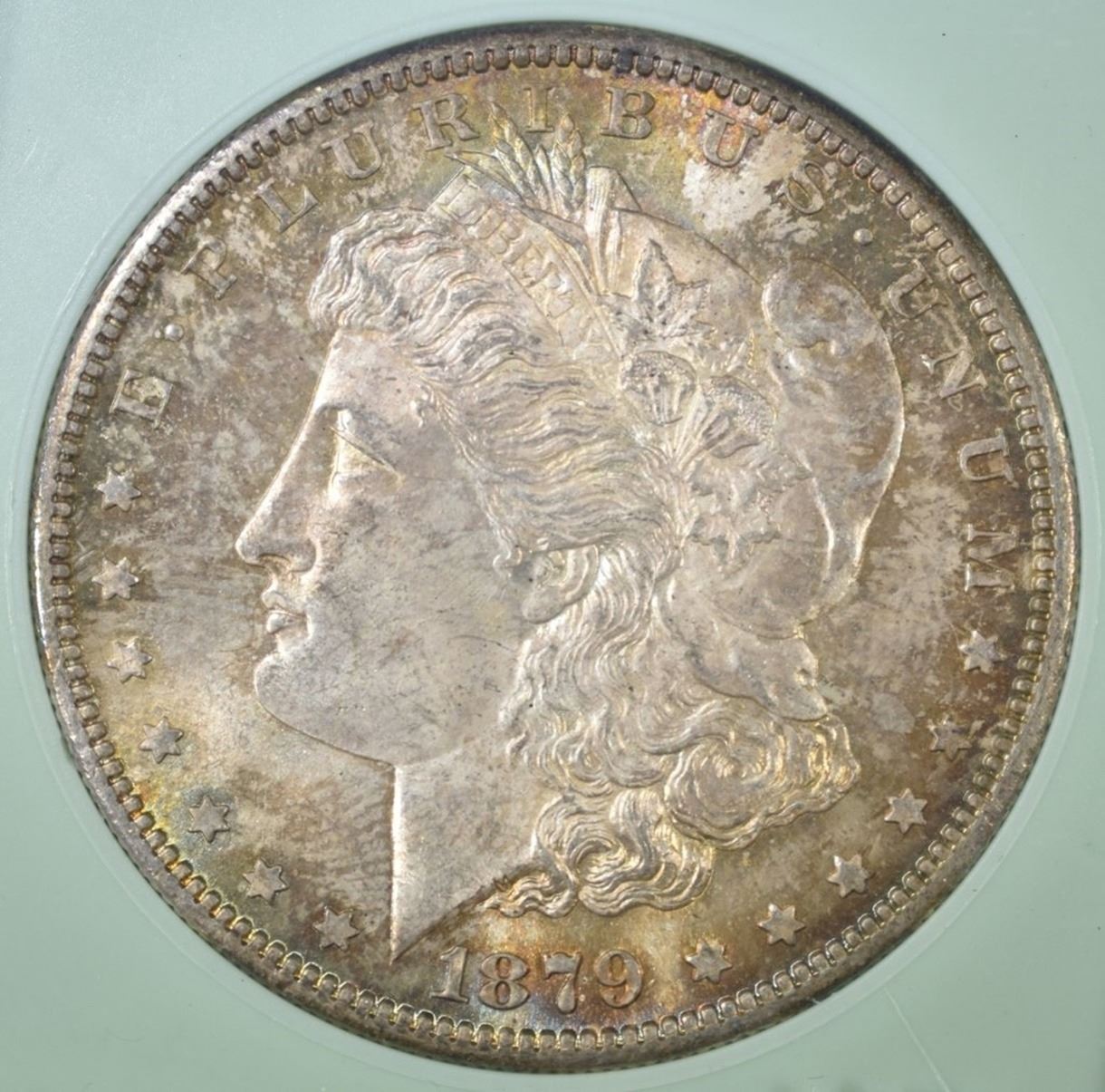 1879-S MORGAN DOLLAR, NTC SUPERB GEM BU+ TONING