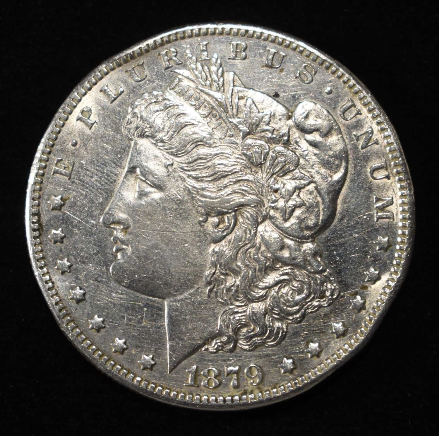 1879-S MORGAN DOLLAR REV. 78 AU, RIM BUMPS
