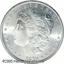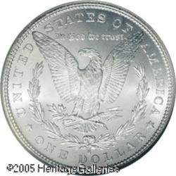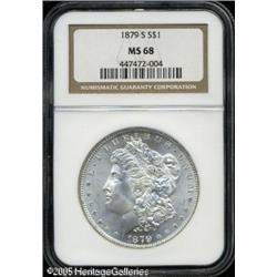 <B>1879-S<img border='0' src='http://www.heritagecoins.com/images/star.gif' width=10 height=10>$1 MS68 NGC.</B></I> Exceptional technical quality and thick mint frost give this coin an unusually high degree of eye appeal. The striking details are also fully defined in all areas and the surfaces are brilliant throughout. Just a marvelous type coin and one that will please the most fastidious collector. Population: 56 in 68, 0 finer (1/05).<BR><I>From The Banks Collection.</B></I> Lot:9950