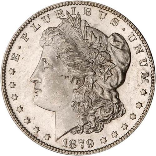 <b>1879-S Morgan Dollar. Reverse of 1879. PCGS graded MS63.</b> The surfaces are glossy and radiant. There is no toning. A gem.