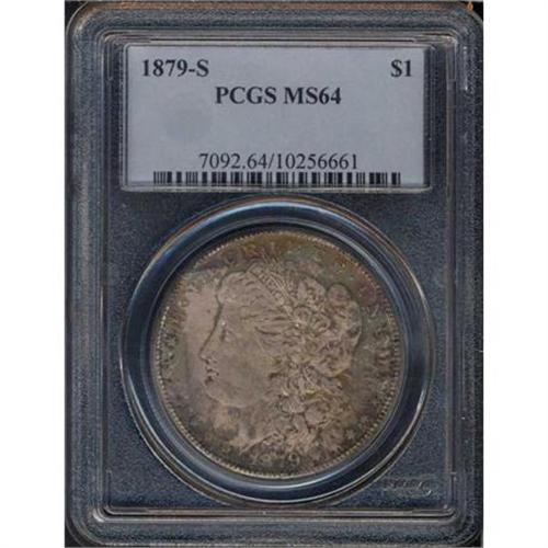 <b>1879-S Morgan Dollar. Reverse of 1879. PCGS graded MS64.</b> Lovely toning atop swirling frosted luster <b>(PCGS # 7092)</b>
