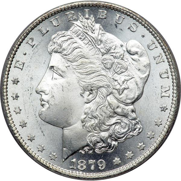 1879-S Morgan Dollar. PCGS graded MS-66+. Well struck and a white gem with lovely cartwheel luster (PCGS # 7092) .