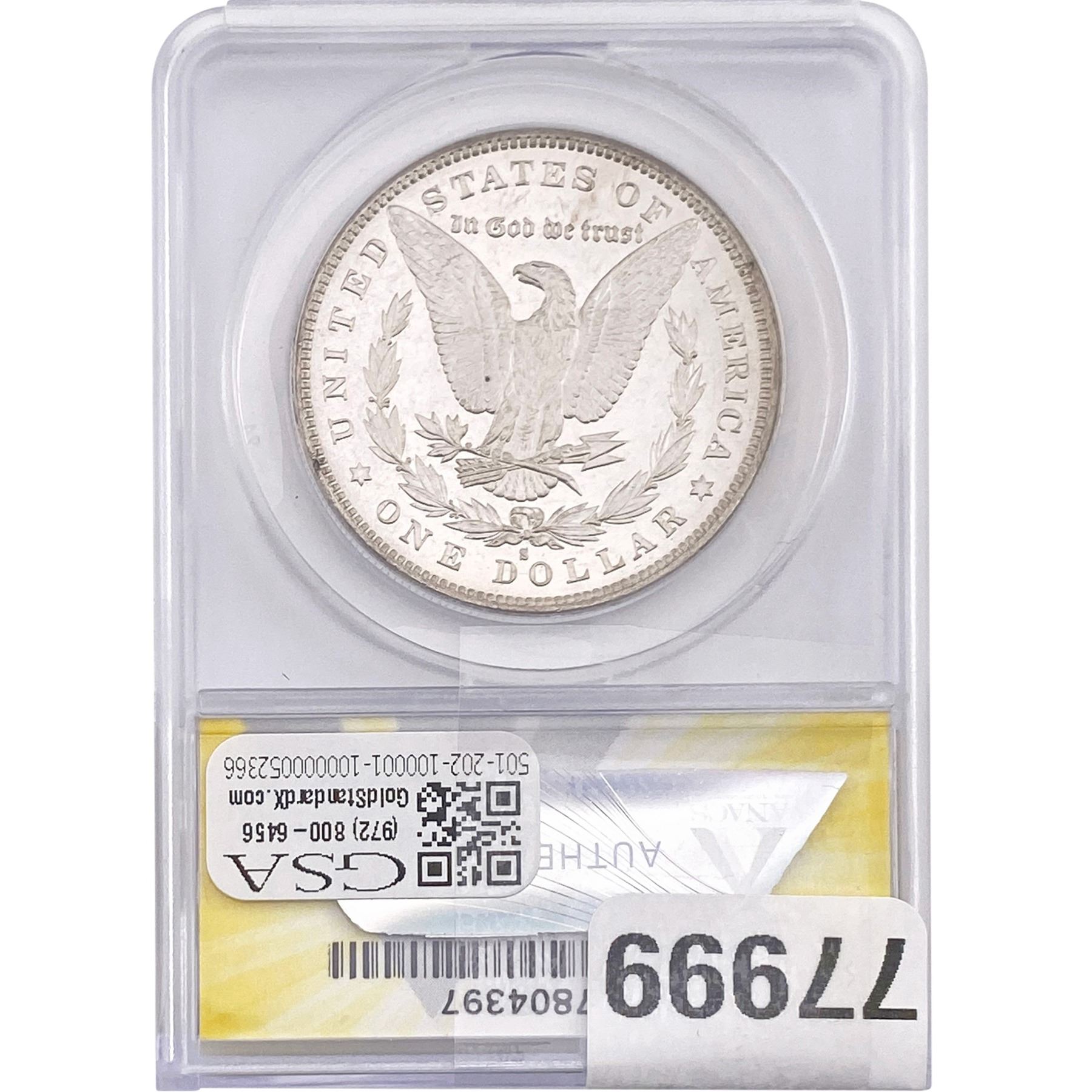 e. Coins sold referencing a third-party grading service are sold “AS IS” without any express or implied warranty, except for a guarantee by GSA that they are genuine. Removal or alteration of the holder, voids all of Bidder’s claims concerning that Product. Certain warranties may be available from the grading services and Bidders are referred to them for further details: Numismatic Guaranty Corporation (NGC), PO Box 4776, Sarasota, FL 34230, www.ngccoin.com/services/writtenguarantee.asp; Professional Coin Grading Services (PCGS), PO Box 9458, Newport Beach, CA 92658, www.pcgs.com/guarantee.html; ANACS, 6555 S. Kenton St., Ste. 303, Englewood, CO 80111; and Independent Coin Grading Co. (ICG), 7901 East Bellview, Ave., Suite 50, Englewood, CO 80111.