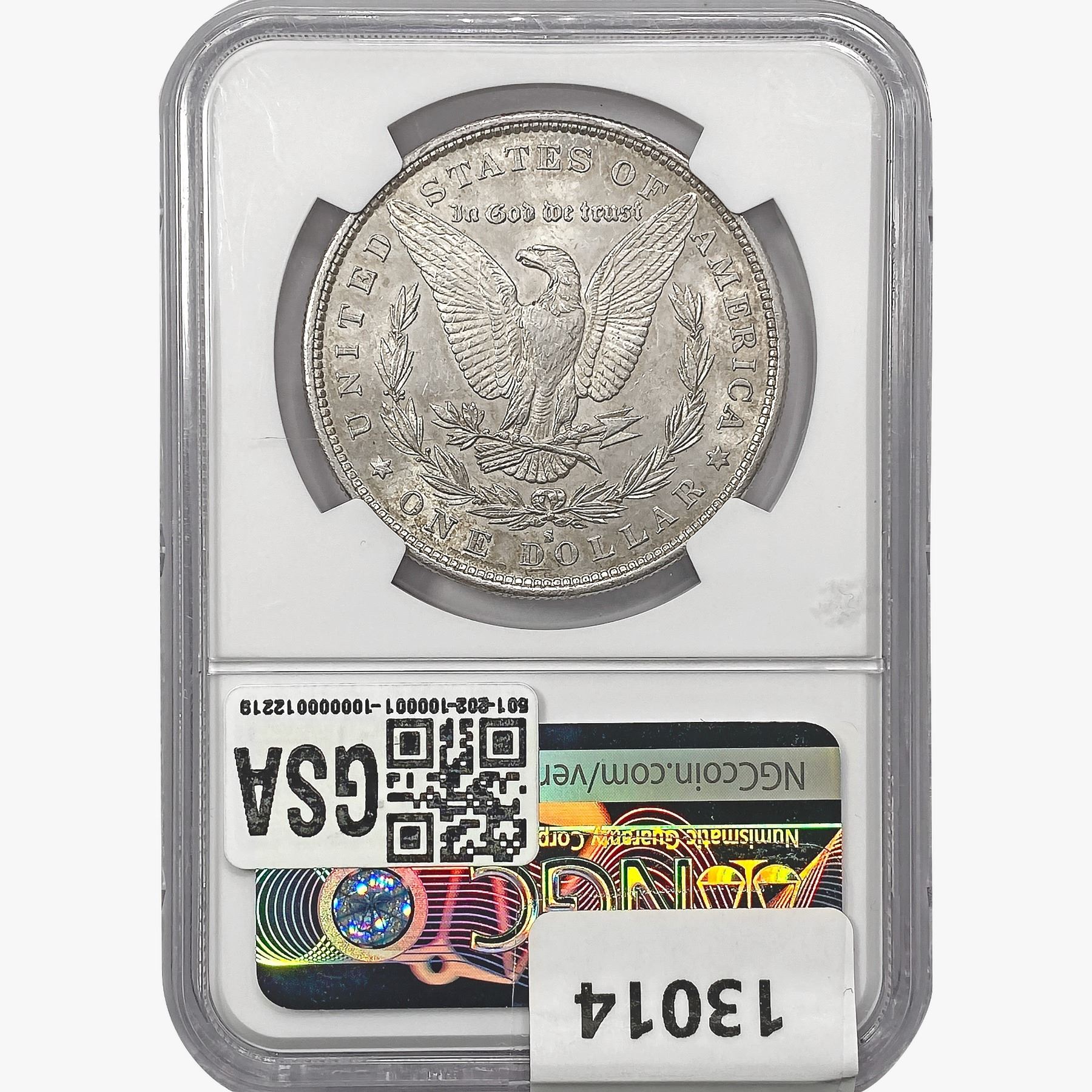 e. Coins sold referencing a third-party grading service are sold "AS IS" without any express or implied warranty, except for a guarantee by GSA that they are genuine. Removal or alteration of the holder, voids all of Bidder's claims concerning that Product. Certain warranties may be available from the grading services and Bidders are referred to them for further details: Numismatic Guaranty Corporation (NGC), PO Box 4776, Sarasota, FL 34230, www.ngccoin.com/services/writtenguarantee.asp; Professional Coin Grading Services (PCGS), PO Box 9458, Newport Beach, CA 92658, www.pcgs.com/guarantee.html; ANACS, 6555 S. Kenton St., Ste. 303, Englewood, CO 80111; and Independent Coin Grading Co. (ICG), 7901 East Bellview, Ave., Suite 50, Englewood, CO 80111.