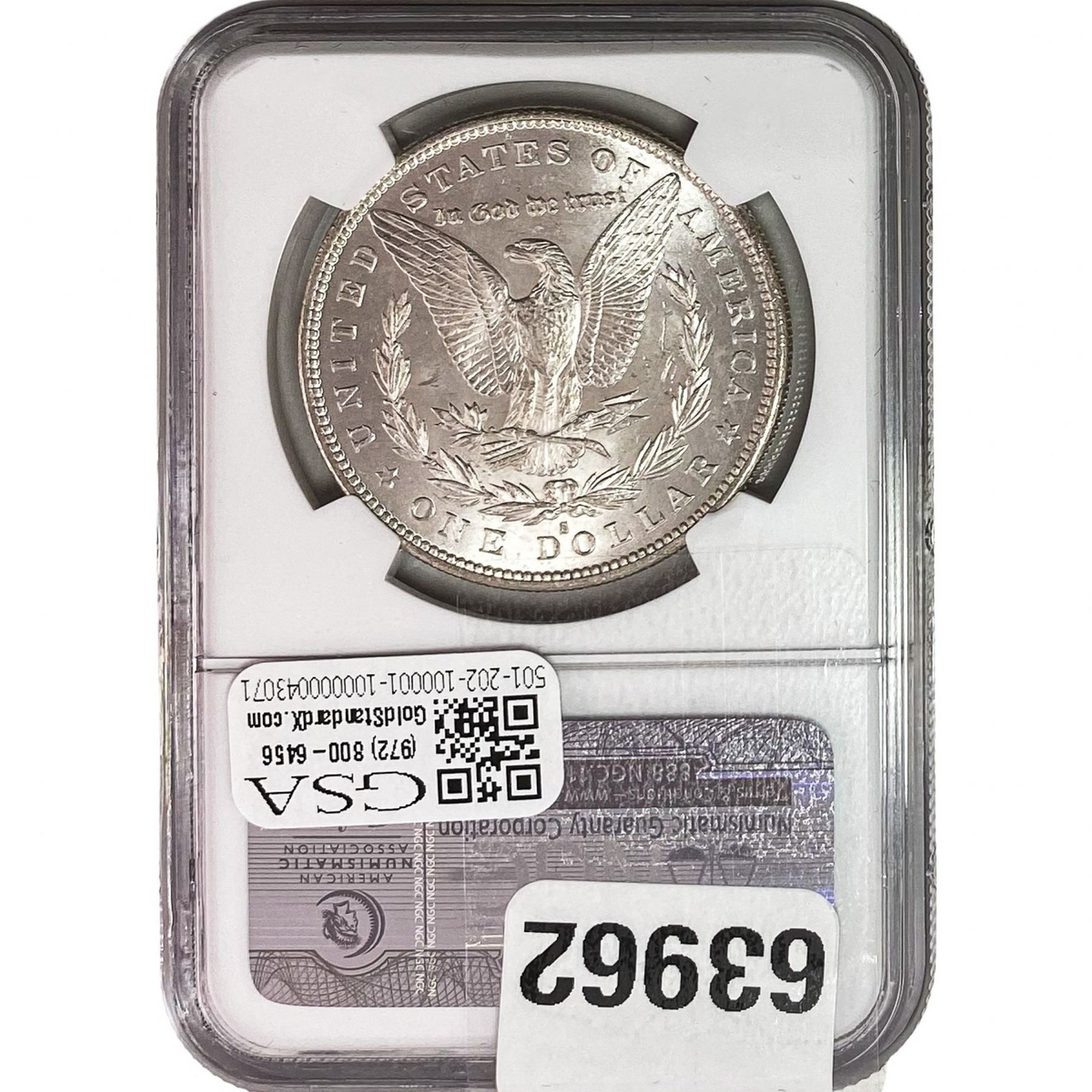 e. Coins sold referencing a third-party grading service are sold “AS IS” without any express or implied warranty, except for a guarantee by GSA that they are genuine. Removal or alteration of the holder, voids all of Bidder’s claims concerning that Product. Certain warranties may be available from the grading services and Bidders are referred to them for further details: Numismatic Guaranty Corporation (NGC), PO Box 4776, Sarasota, FL 34230, www.ngccoin.com/services/writtenguarantee.asp; Professional Coin Grading Services (PCGS), PO Box 9458, Newport Beach, CA 92658, www.pcgs.com/guarantee.html; ANACS, 6555 S. Kenton St., Ste. 303, Englewood, CO 80111; and Independent Coin Grading Co. (ICG), 7901 East Bellview, Ave., Suite 50, Englewood, CO 80111.