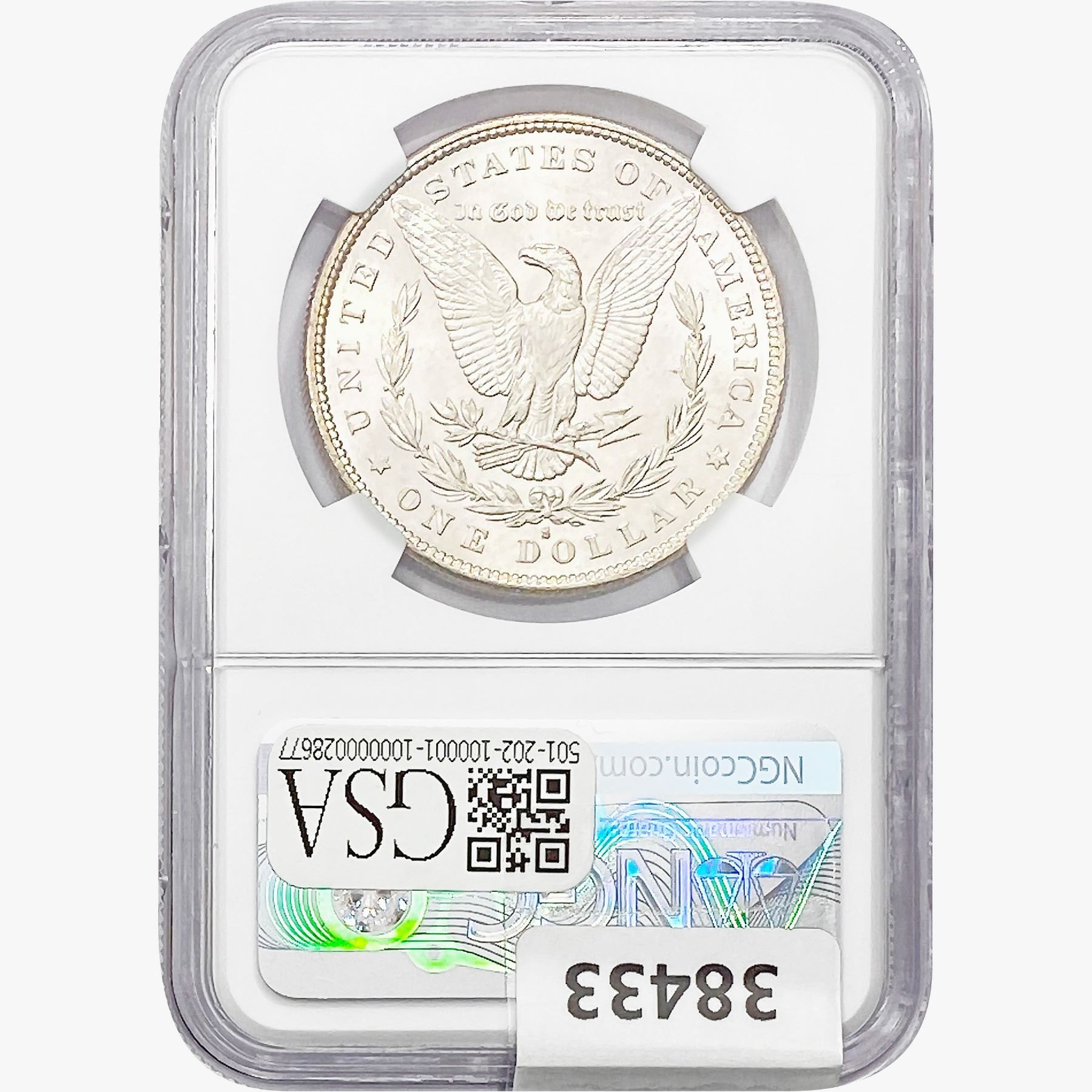 COINS AND CURRENCY LISTED IN GSA’S CATALOG AS GRADED AND ENCAPSULATED BY PCGS, NGC, ANACS, ICG, PCGS CURRENCY, PMG, PCGS BANKNOTE GRADING, CMC OR ANY OTHER THIRD-PARTY GRADING SERVICE ARE LIKEWISE SOLD “AS-IS” EXCEPT AS EXPRESSLY SET FORTH HEREIN. ALL THIRD-PARTY GRADING SERVICE GUARANTEES, INCLUDING AUTHENTICITY, ARE THE SOLE RESPONSIBILITY OF THE THIRD-PARTY GRADING SERVICE AND NOT WARRANTIES OR GUARANTEES OF GSA. BIDDERS SHOULD CONTACT THESE THIRD-PARTY GRADING SERVICES DIRECTLY WITH RESPECT TO ANY CLAIMS OR QUESTIONS THEY MAY HAVE CONCERNING THEIR GUARANTEES AND WARRANTIES. BIDDERS ACKNOWLEDGE AND AGREE THAT AUCTIONEER IS NOT BOUND BY OR LIABLE FOR ANY OPINION OR CERTIFICATION BY ANY THIRD-PARTY GRADING SERVICE. REMOVAL OF A PRODUCT FROM ITS PROTECTIVE CASING OR HOLDER OR ALTERATION OF ANY COIN HOLDER WAIVES ALL RIGHTS CONCERNING THE PRODUCT CONTAINED THEREIN.