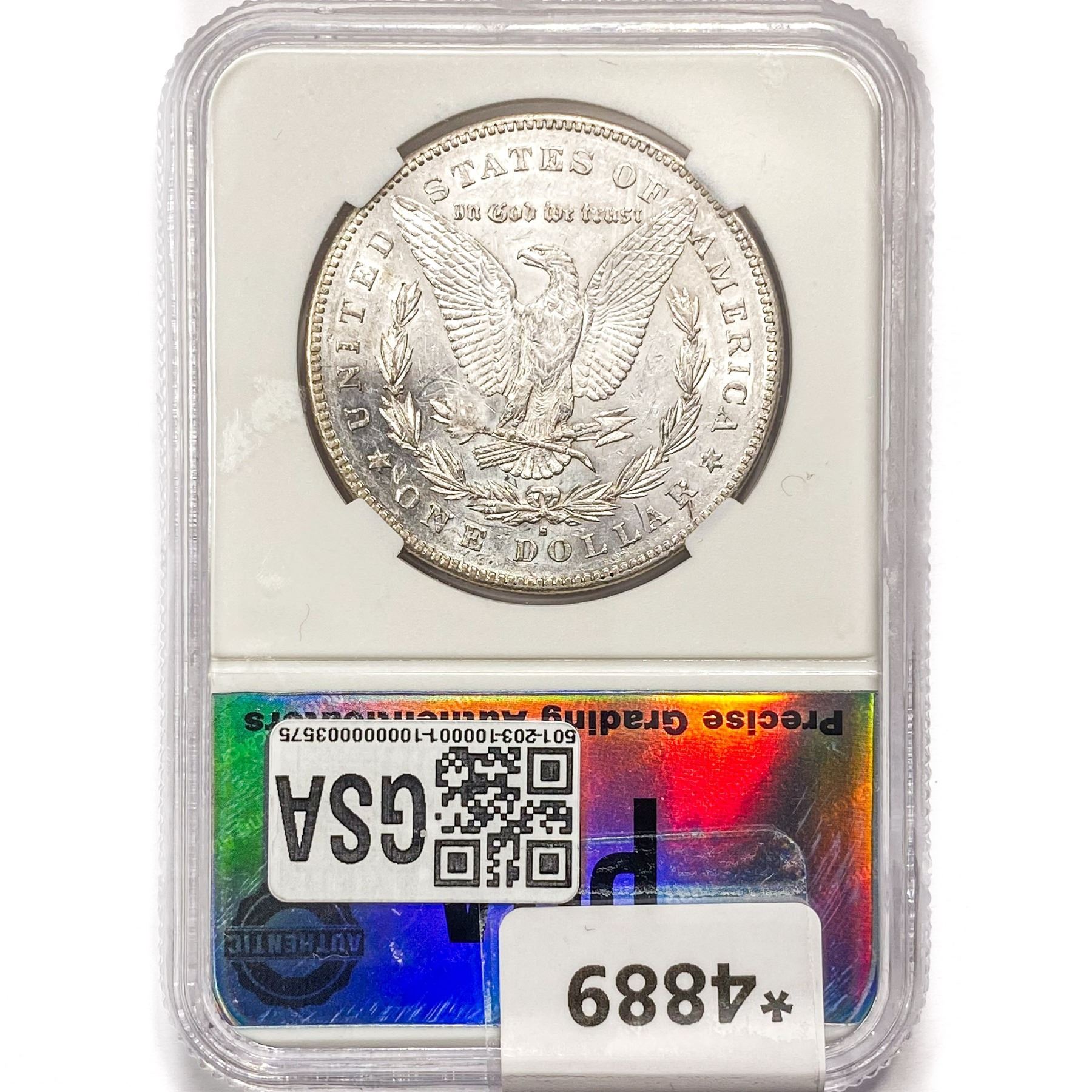 COINS AND CURRENCY LISTED IN GSA’S CATALOG AS GRADED AND ENCAPSULATED BY PCGS, NGC, ANACS, ICG, PCGS CURRENCY, PMG, PCGS BANKNOTE GRADING, CMC OR ANY OTHER THIRD-PARTY GRADING SERVICE ARE LIKEWISE SOLD “AS-IS” EXCEPT AS EXPRESSLY SET FORTH HEREIN. ALL THIRD-PARTY GRADING SERVICE GUARANTEES, INCLUDING AUTHENTICITY, ARE THE SOLE RESPONSIBILITY OF THE THIRD-PARTY GRADING SERVICE AND NOT WARRANTIES OR GUARANTEES OF GSA. BIDDERS SHOULD CONTACT THESE THIRD-PARTY GRADING SERVICES DIRECTLY WITH RESPECT TO ANY CLAIMS OR QUESTIONS THEY MAY HAVE CONCERNING THEIR GUARANTEES AND WARRANTIES. BIDDERS ACKNOWLEDGE AND AGREE THAT AUCTIONEER IS NOT BOUND BY OR LIABLE FOR ANY OPINION OR CERTIFICATION BY ANY THIRD-PARTY GRADING SERVICE. REMOVAL OF A PRODUCT FROM ITS PROTECTIVE CASING OR HOLDER OR ALTERATION OF ANY COIN HOLDER WAIVES ALL RIGHTS CONCERNING THE PRODUCT CONTAINED THEREIN.