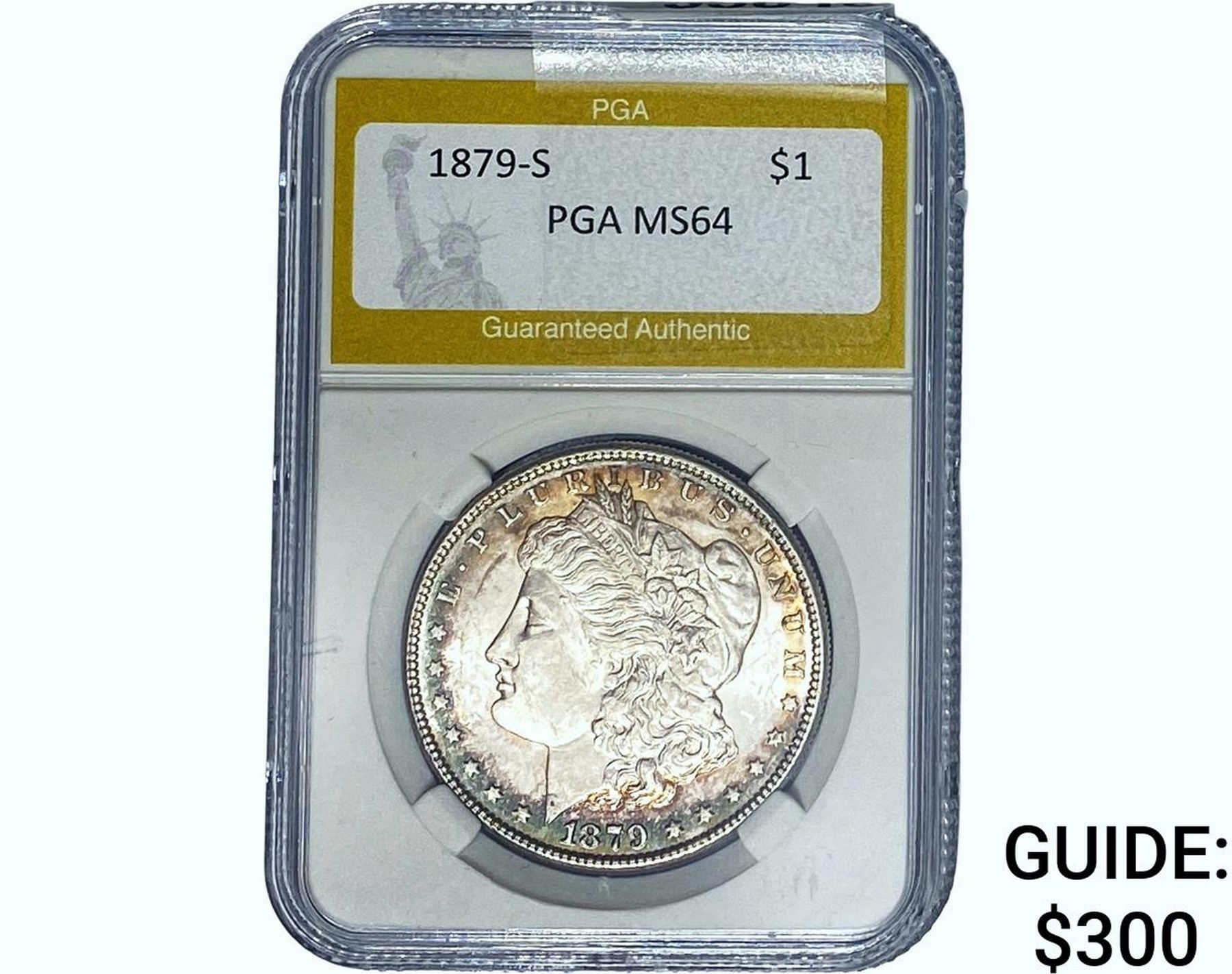 COINS AND CURRENCY LISTED IN GSA’S CATALOG AS GRADED AND ENCAPSULATED BY PCGS, NGC, ANACS, ICG, PCGS CURRENCY, PMG, PCGS BANKNOTE GRADING, CMC OR ANY OTHER THIRD-PARTY GRADING SERVICE ARE LIKEWISE SOLD “AS-IS” EXCEPT AS EXPRESSLY SET FORTH HEREIN. ALL THIRD-PARTY GRADING SERVICE GUARANTEES, INCLUDING AUTHENTICITY, ARE THE SOLE RESPONSIBILITY OF THE THIRD-PARTY GRADING SERVICE AND NOT WARRANTIES OR GUARANTEES OF GSA. BIDDERS SHOULD CONTACT THESE THIRD-PARTY GRADING SERVICES DIRECTLY WITH RESPECT TO ANY CLAIMS OR QUESTIONS THEY MAY HAVE CONCERNING THEIR GUARANTEES AND WARRANTIES. BIDDERS ACKNOWLEDGE AND AGREE THAT AUCTIONEER IS NOT BOUND BY OR LIABLE FOR ANY OPINION OR CERTIFICATION BY ANY THIRD-PARTY GRADING SERVICE. REMOVAL OF A PRODUCT FROM ITS PROTECTIVE CASING OR HOLDER OR ALTERATION OF ANY COIN HOLDER WAIVES ALL RIGHTS CONCERNING THE PRODUCT CONTAINED THEREIN.