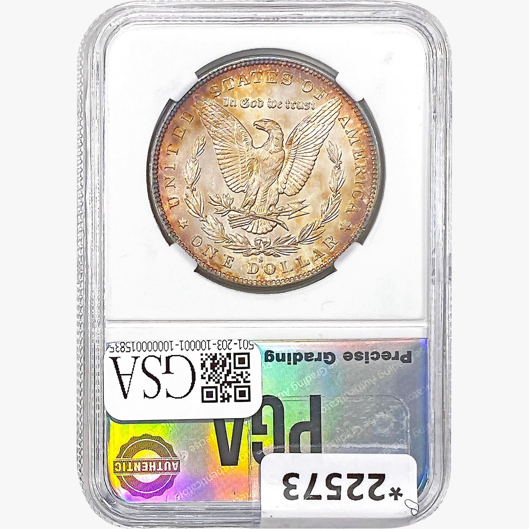 COINS AND CURRENCY LISTED IN GSA’S CATALOG AS GRADED AND ENCAPSULATED BY PCGS, NGC, ANACS, ICG, PCGS CURRENCY, PMG, PCGS BANKNOTE GRADING, CMC OR ANY OTHER THIRD-PARTY GRADING SERVICE ARE LIKEWISE SOLD “AS-IS” EXCEPT AS EXPRESSLY SET FORTH HEREIN. ALL THIRD-PARTY GRADING SERVICE GUARANTEES, INCLUDING AUTHENTICITY, ARE THE SOLE RESPONSIBILITY OF THE THIRD-PARTY GRADING SERVICE AND NOT WARRANTIES OR GUARANTEES OF GSA. BIDDERS SHOULD CONTACT THESE THIRD-PARTY GRADING SERVICES DIRECTLY WITH RESPECT TO ANY CLAIMS OR QUESTIONS THEY MAY HAVE CONCERNING THEIR GUARANTEES AND WARRANTIES. BIDDERS ACKNOWLEDGE AND AGREE THAT AUCTIONEER IS NOT BOUND BY OR LIABLE FOR ANY OPINION OR CERTIFICATION BY ANY THIRD-PARTY GRADING SERVICE. REMOVAL OF A PRODUCT FROM ITS PROTECTIVE CASING OR HOLDER OR ALTERATION OF ANY COIN HOLDER WAIVES ALL RIGHTS CONCERNING THE PRODUCT CONTAINED THEREIN.