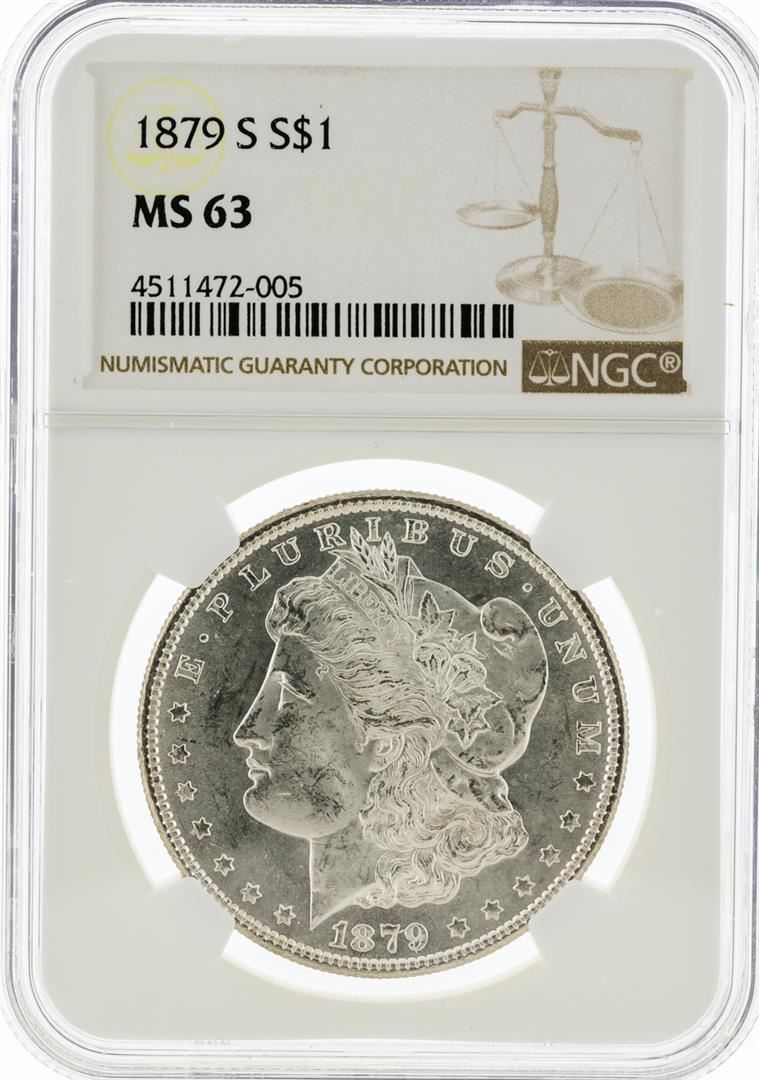 One 1879-S NGC MS63 Morgan Silver Dollar. NGC Certified.