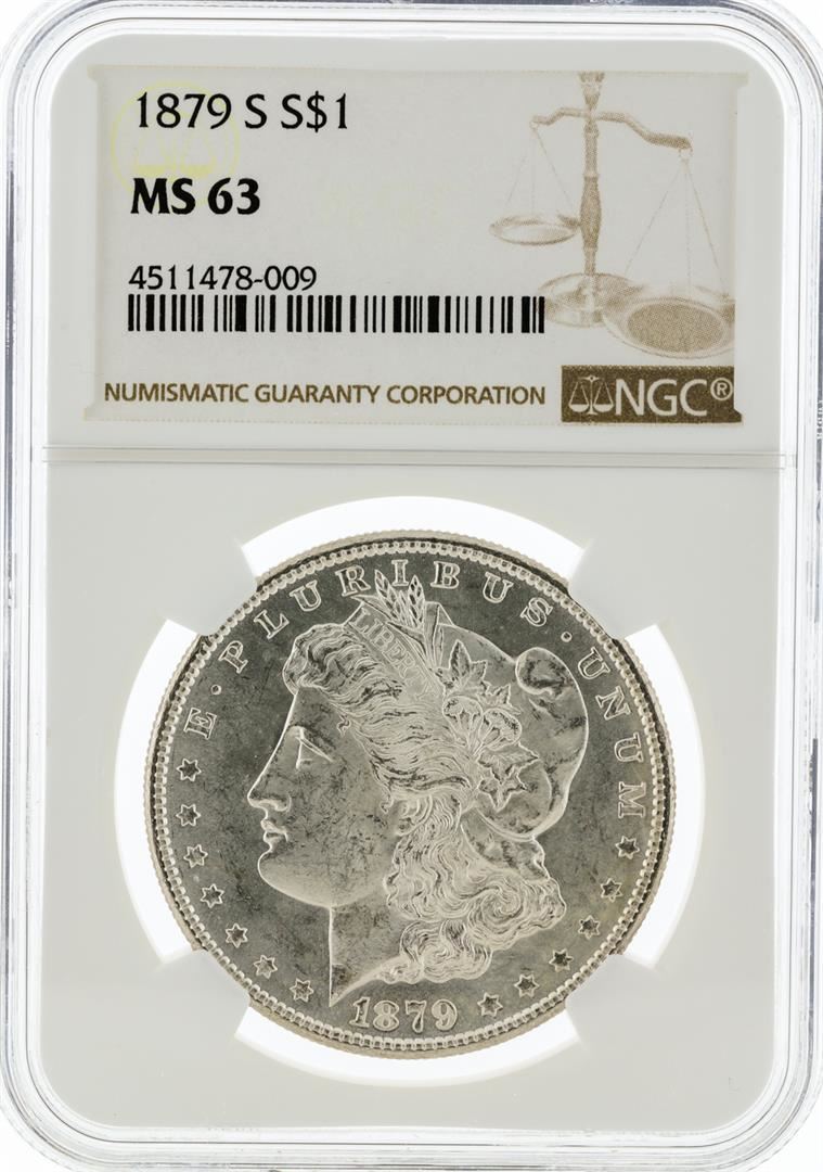 One 1879-S NGC MS63 Morgan Silver Dollar. NGC Certified.