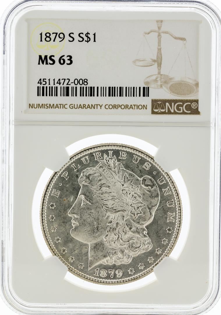 One 1879-S NGC MS63 Morgan Silver Dollar. NGC Certified.