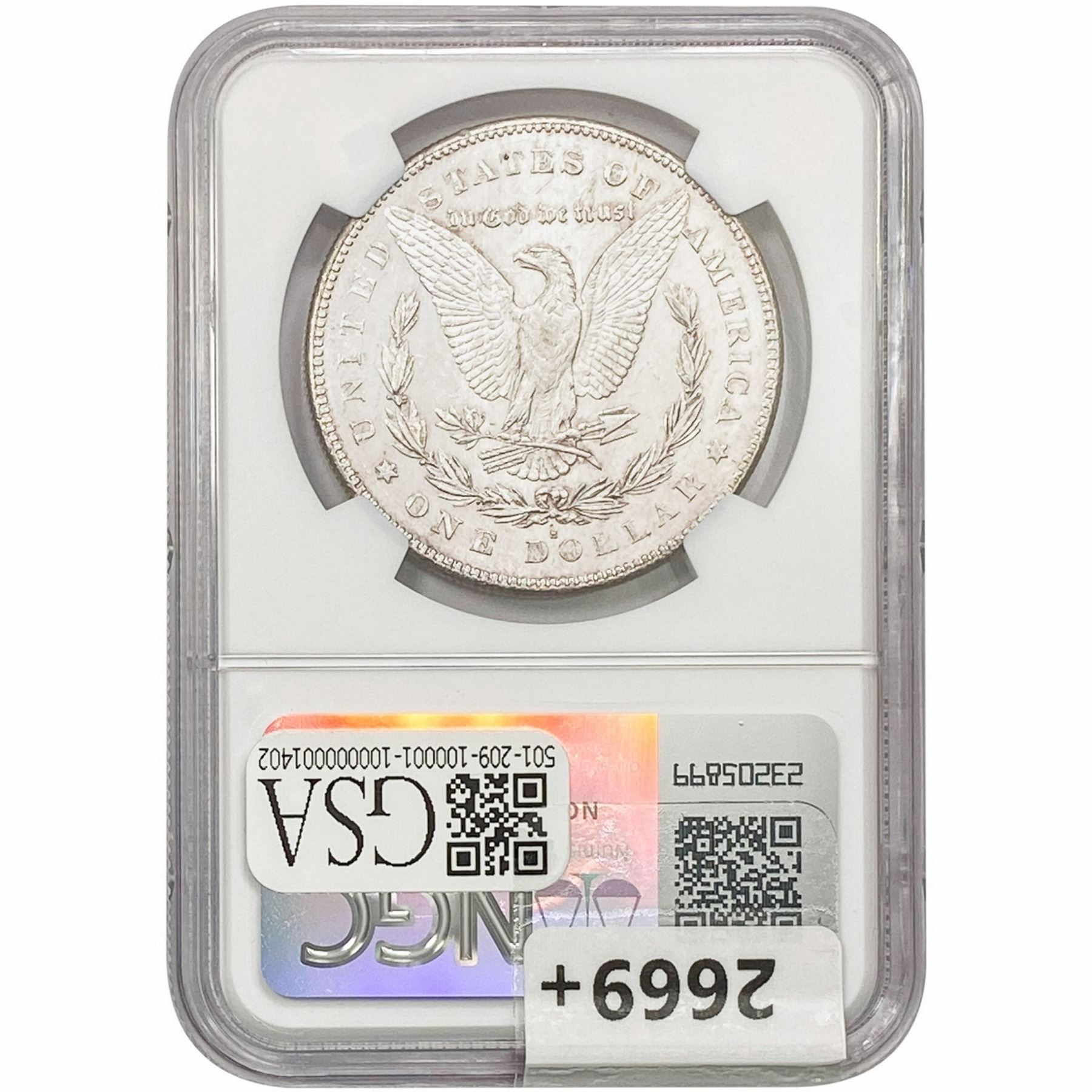 COINS AND CURRENCY LISTED IN GSA’S CATALOG AS GRADED AND ENCAPSULATED BY PCGS, NGC, ANACS, ICG, PCGS CURRENCY, PMG, PCGS BANKNOTE GRADING, CMC OR ANY OTHER THIRD-PARTY GRADING SERVICE ARE LIKEWISE SOLD “AS-IS” EXCEPT AS EXPRESSLY SET FORTH HEREIN. ALL THIRD-PARTY GRADING SERVICE GUARANTEES, INCLUDING AUTHENTICITY, ARE THE SOLE RESPONSIBILITY OF THE THIRD-PARTY GRADING SERVICE AND NOT WARRANTIES OR GUARANTEES OF GSA. BIDDERS SHOULD CONTACT THESE THIRD-PARTY GRADING SERVICES DIRECTLY WITH RESPECT TO ANY CLAIMS OR QUESTIONS THEY MAY HAVE CONCERNING THEIR GUARANTEES AND WARRANTIES. BIDDERS ACKNOWLEDGE AND AGREE THAT AUCTIONEER IS NOT BOUND BY OR LIABLE FOR ANY OPINION OR CERTIFICATION BY ANY THIRD-PARTY GRADING SERVICE. REMOVAL OF A PRODUCT FROM ITS PROTECTIVE CASING OR HOLDER OR ALTERATION OF ANY COIN HOLDER WAIVES ALL RIGHTS CONCERNING THE PRODUCT CONTAINED THEREIN.