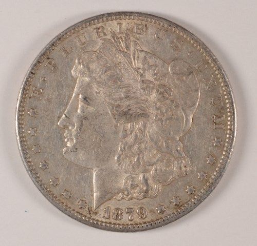 1879-S REVERSE OF 1878 MORGAN SILVER DOLLAR, AU-53 ORIGINAL