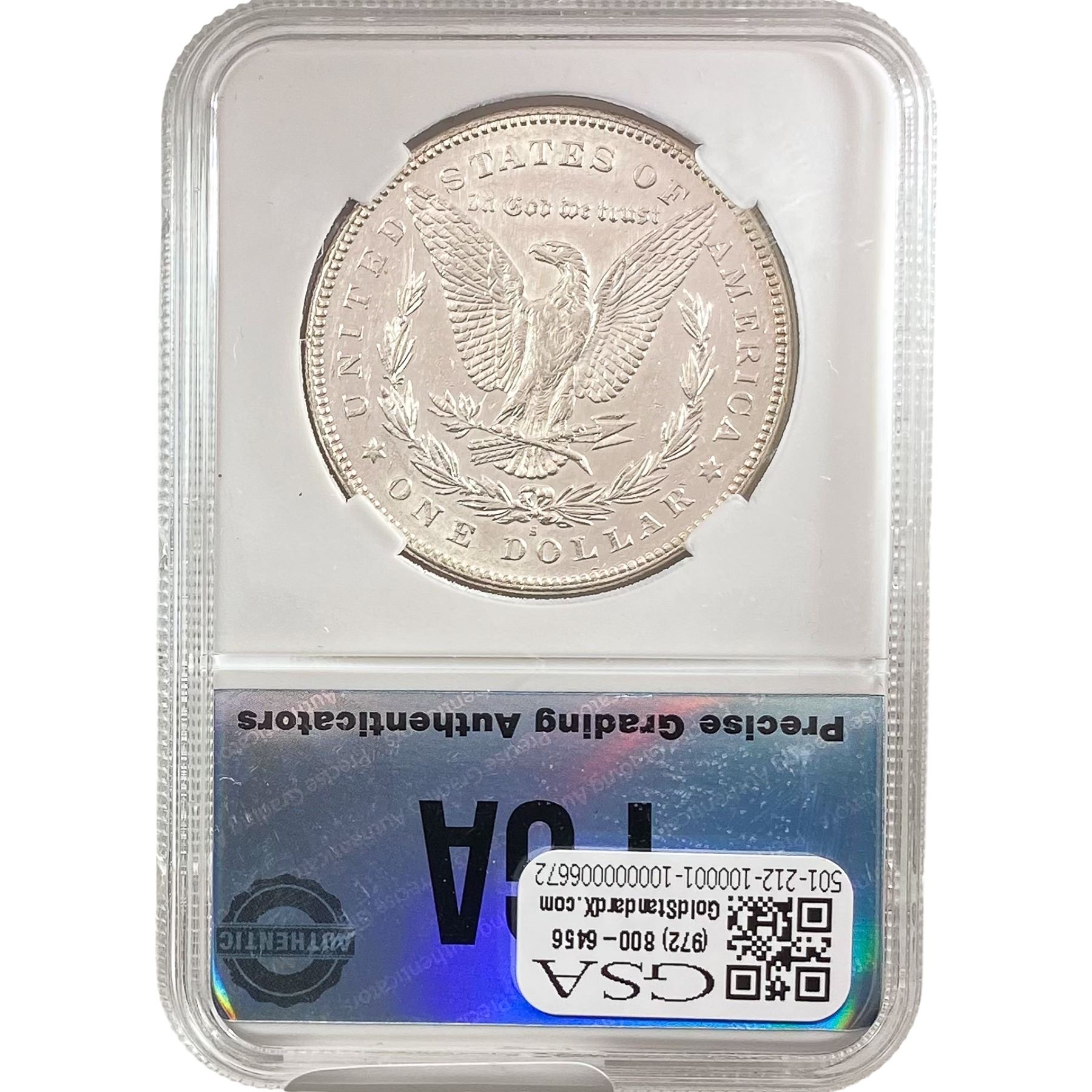 e. Coins sold referencing a third-party grading service are sold “AS IS” without any express or implied warranty, except for a guarantee by GSA that they are genuine. Removal or alteration of the holder, voids all of Bidder’s claims concerning that Product. Certain warranties may be available from the grading services and Bidders are referred to them for further details: Numismatic Guaranty Corporation (NGC), PO Box 4776, Sarasota, FL 34230, www.ngccoin.com/services/writtenguarantee.asp; Professional Coin Grading Services (PCGS), PO Box 9458, Newport Beach, CA 92658, www.pcgs.com/guarantee.html; ANACS, 6555 S. Kenton St., Ste. 303, Englewood, CO 80111; and Independent Coin Grading Co. (ICG), 7901 East Bellview, Ave., Suite 50, Englewood, CO 80111.