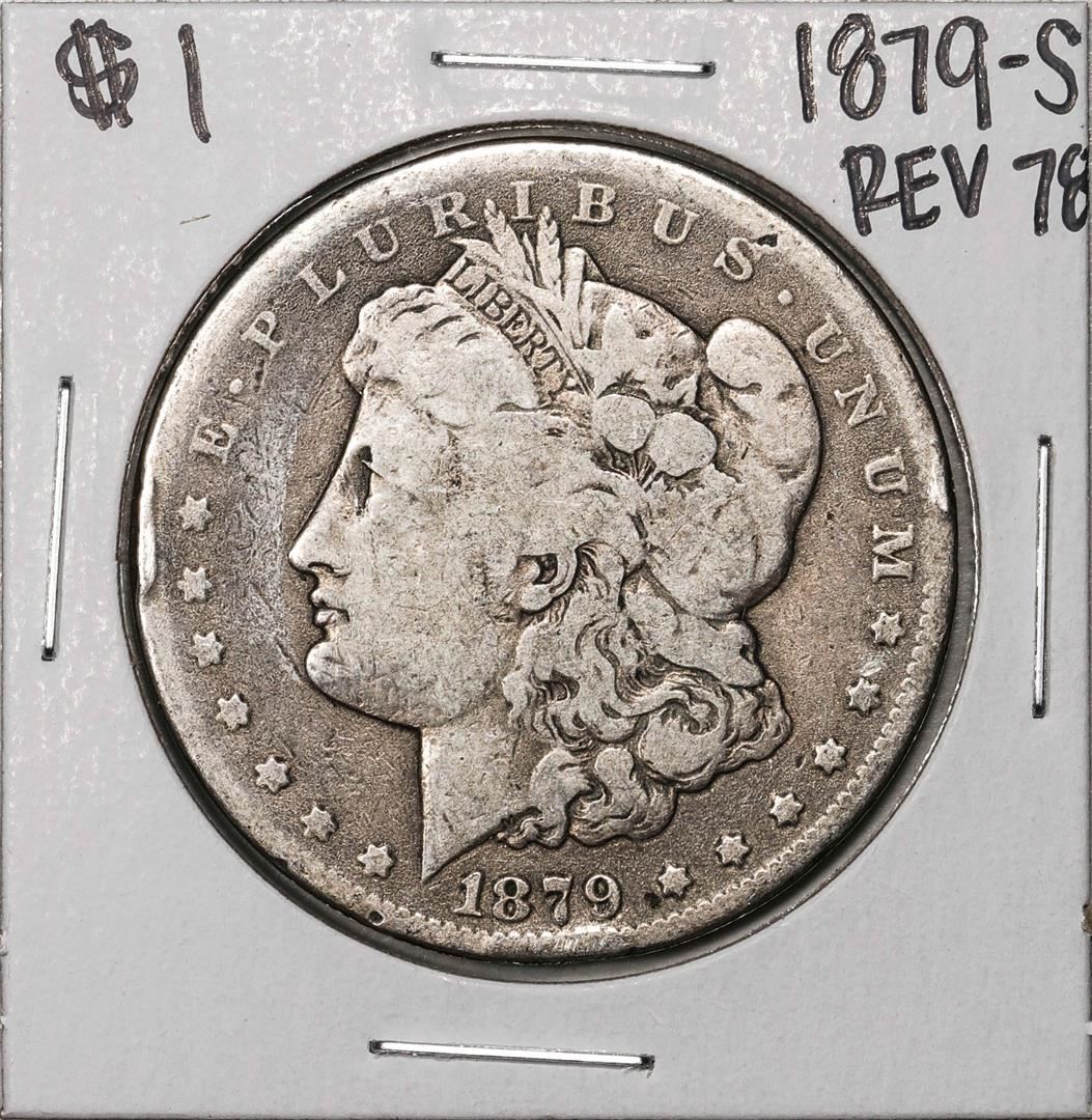 One 1879-S Rev of 78 $1 Morgan Silver Dollar Coin.