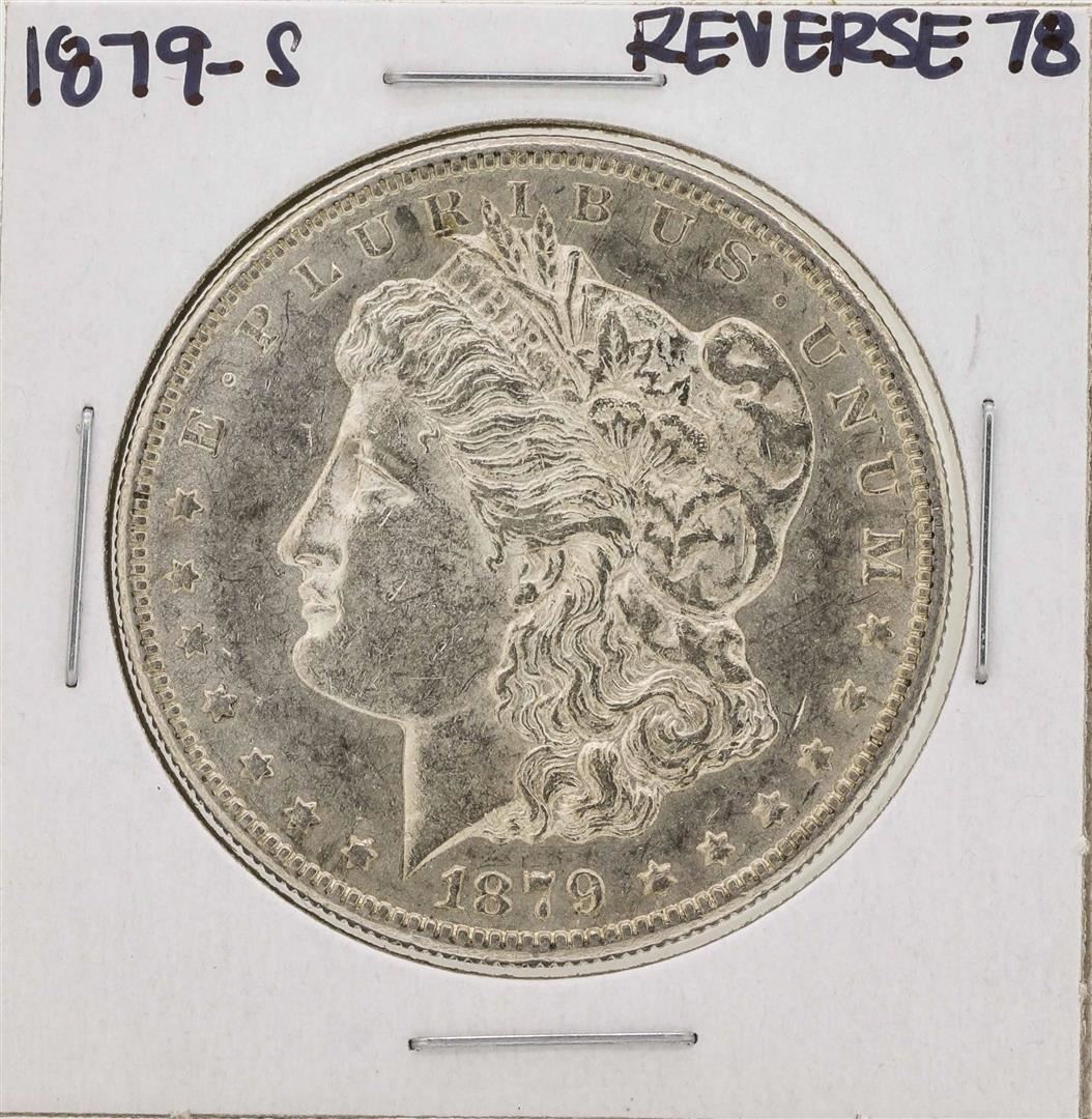 One 1879-S Reverse 78 $1 Morgan Silver Dollar Coin.