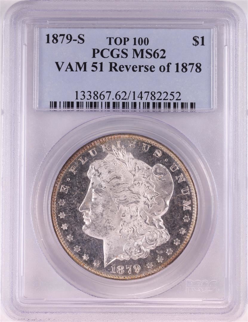 One 1879-S Reverse of 1878 VAM51 $1 Morgan Silver Dollar Coin PCGS MS62 Top 100. PCGS Graded.