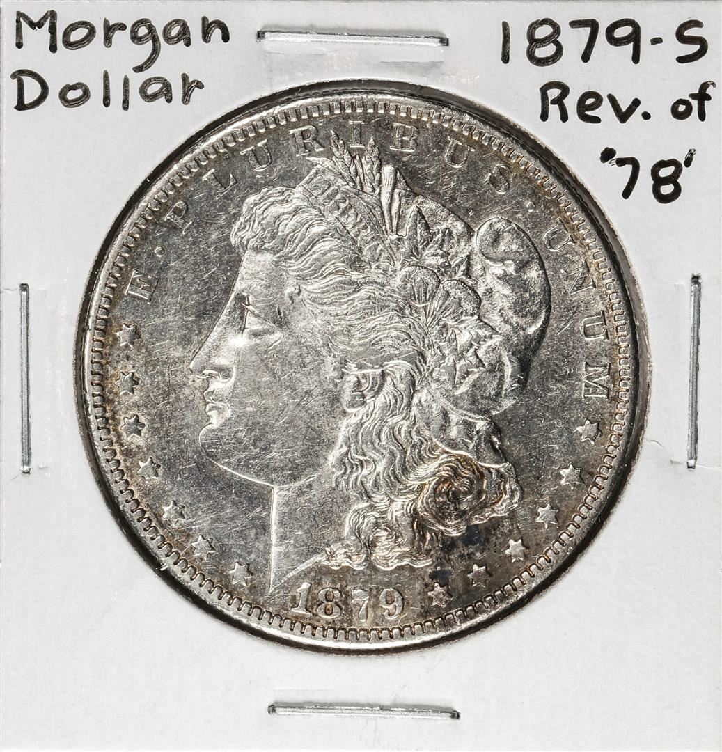 One 1879-S Reverse of '78 $1 Morgan Silver Dollar Coin.