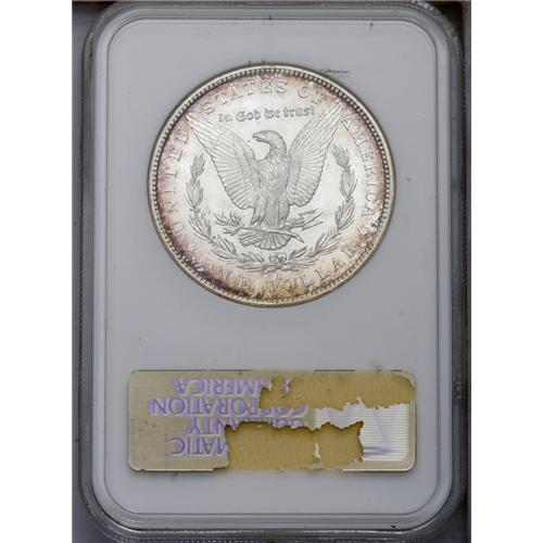 <B>1879-S<img border='0' src='http://www.heritagecoins.com/images/star.gif' width=10 height=10>$1> MS67 NGC.</B></I> A flashy and beautiful high grade silver dollar with frosty devices, semi-prooflike fields, and medium plum-gold borders. Faint contact is noted northeast of the arrowheads.<BR><I>From The Hayward Collection.</B></I>