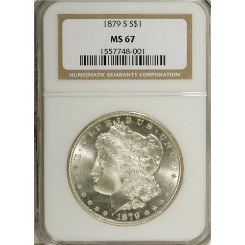 1879-S S$1 MS67 NGC. This highly lustrous piece has fr