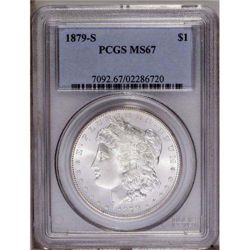 1879-S S$1 MS67 PCGS. Fully struck, highly lustrous an