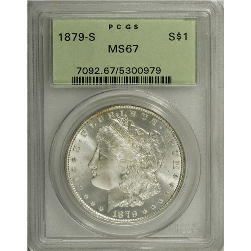 1879-S S$1 MS67 PCGS. Sharp definition is apparent on