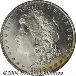 <B>1879-S<S$1> MS67 PCGS.</B></I> An impeccable example featuring mostly snow-white, essentially untoned surfaces. A thin crescent of golden patina is seen at the lower right portion of the obverse rim. Fully defined, as usual, with no mentionable marks or abrasions. A Superb type coin representative.<BR><I>From the JFS Collection.</B></I> <BR><BR><B>Important notice:</B> Heritage usually auctions material at the rate of 200-250 lots per hour. On some occasions eBay Live bid software or the Internet may not be able to keep up with the pace of the auction. We recommend placing a realistic absentee bid now as insurance to avoid disappointment. Occasionally the auctioneer may eliminate or reject an eBay Live bid, and the auctioneer may also reopen a lot after the close of the eBay live bidding (usually because we missed an audience bid), and may reject your bid even if it shows you as the winning bidder. By bidding via eBay Live, you agree that Heritage may award the lot to another bidder at its sole discretion under the circumstances described above or any other reasonable circumstances. Since eBay bids are not shown to us until we open the lot on the floor, we treat those bids just like floor bids. In most cases the floor responds before the eBay bid is presented to us, due to Internet lag time, so for consistency we have made it a policy that floor bids are always considered first over tie eBay live bids. Also please note that all Heritage lots purchased through eBay Live carry a 20% Buyer's Premium. Please make sure you read the Terms and Conditions before you bid. </span></font></tr></table></td></tr></table>