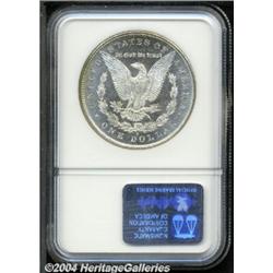 <B>1879-S<S$1> MS67 Prooflike NGC.</B></I> Outstanding for the grade, this Morgan dollar is exquisitely preserved with no mentionable marks atop the surfaces. Perhaps more appealing than the coin's state of preservation however is the eye appeal. The devices are pleasingly frosted and heavily die polishing in the fields gives the coin its prooflike appearance. Additive to the already astounding eye appeal is a yellow, crimson, and navy-blue patina on the lower left portions of the obverse. Population: 46 in 67, 3 finer (7/04). <BR><BR><B>Important notice:</B> Heritage usually auctions material at the rate of 200-250 lots per hour. On some occasions eBay Live bid software or the Internet may not be able to keep up with the pace of the auction. We recommend placing a realistic absentee bid now as insurance to avoid disappointment. Occasionally the auctioneer may eliminate or reject an eBay Live bid, and the auctioneer may also reopen a lot after the close of the eBay live bidding (usually because we missed an audience bid), and may reject your bid even if it shows you as the winning bidder. By bidding via eBay Live, you agree that Heritage may award the lot to another bidder at its sole discretion under the circumstances described above or any other reasonable circumstances. Since eBay bids are not shown to us until we open the lot on the floor, we treat those bids just like floor bids. In most cases the floor responds before the eBay bid is presented to us, due to Internet lag time, so for consistency we have made it a policy that floor bids are always considered first over tie eBay live bids. Also please note that all Heritage lots purchased through eBay Live carry a 20% Buyer's Premium. Please make sure you read the Terms and Conditions before you bid. </span></font></tr></table></td></tr></table>