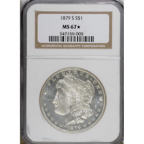 1879-S S$1 MS67 S NGC. Flashy and partially prooflike
