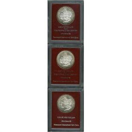 <B>1879-S<img border='0' src='http://www.heritagecoins.com/images/star.gif' width=10 height=10>$1> Morgan Dollar MS65 Paramount International (MS62),</B></I> attractive golden-brown and apple-green margins, a clean reverse; <B>1879-S Morgan Dollar MS65 Paramount International (MS62),</B></I> pleasing despite minor facial grazes; and an <B>1881-S Morgan Dollar MS65 Paramount International (MS64),</B></I> a beautiful silver dollar with flashy fields, clean surfaces, and lightly toned borders. The first two coins are from the Redfield Collection.<BR><I>From The Hayward Collection.</B></I>