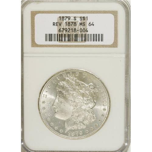 1879-S S$1 Reverse of 1878 MS64 NGC. A brilliant and l