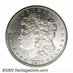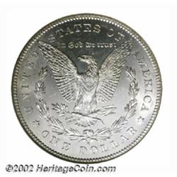 1879-S S$1 Reverse of 1878 MS65 NGC. Top 100 Variety. The Second Reverse (a.k.a. Reverse of 1878) is, by far, the rarer of the two known hub varieties of the 1879-S Morgan Dollar. This variety is well respected as a condition rarity in all Mint State grades, with Bowers' 1993 estimate (which is on the high side) of Gems totaling only 75-150 pieces. Since most of the coins that emerged from the Redfield hoard were extensively bagmarked, the present example probably does not owe its existence to that source. It may, however, have come from a 1,000-coin bag that Harry Forman dispersed earlier. Regardless, this is an uncommonly smooth representative that would form the centerpiece of any advanced Morgan Dollar collection. Both sides are untoned with needle sharp striking detail and a glowing, satiny sheen. Population: 10 (!) in 65, there are none finer (7/02). Important notice: We expect to be auctioning lots at the rate of 200-250 per hour. Sometimes eBay Premier live bid software cannot keep up with that pace, so we strongly recommend that you place a realistic proxy bid now as insurance to avoid disappointment. Also please note that all Heritage/CAA lots purchased through eBay Premier carry a 20% Buyer's Premium. Please make sure you read the Terms and Conditions.