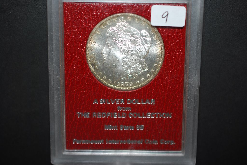 1879-S US Silver Morgan $1 From The Redfield Collection In Display Case; PICC Graded MS65; EST. $225-275