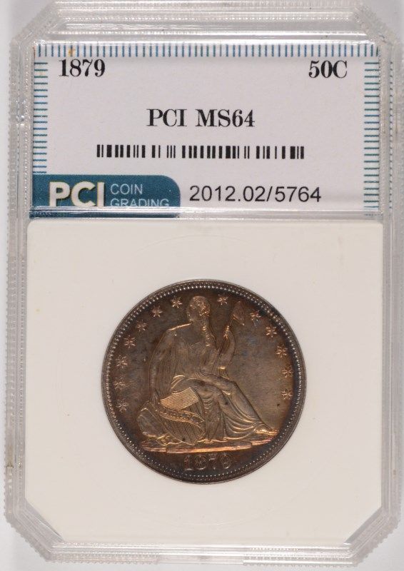 1879 SEATED HALF DOLLAR, PCI MS-64, BEAUTIFUL COLORS, RARE LOW MINTAGE!