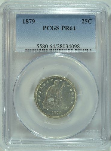 1879 SEATED QUARTER, PCGS PROOF 64 WHITE, LOW MINTAGE DATE!