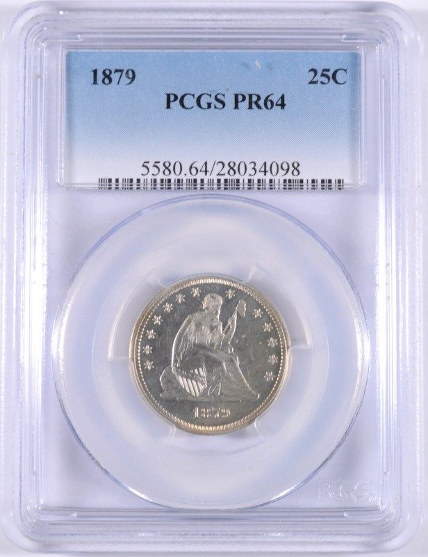 1879 SEATED QUARTER, PCGS PROOF 64 WHITE, LOW MINTAGE DATE!