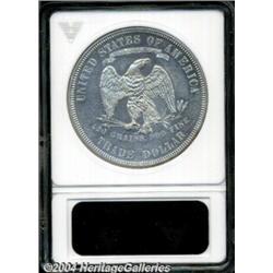 <table><tr><td><table><tr><td>1879 T$1--Cleaned--ANACS. Net PR55. A briefly circulated piece with a thin area of granular tan surface at 9 o'clock on the obverse. Traces of PVC residue are noted on the lower two arrowheads. <BR><BR><B>Important notice:</B> Heritage usually auctions material at the rate of 200-250 lots per hour. On some occasions eBay Live bid software or the Internet may not be able to keep up with the pace of the auction. We recommend placing a realistic absentee bid now as insurance to avoid disappointment. Occasionally the auctioneer may eliminate or reject an eBay Live bid, and the auctioneer may also reopen a lot after the close of the eBay live bidding (usually because we missed an audience bid), and may reject your bid even if it shows you as the winning bidder. By bidding via eBay Live, you agree that Heritage may award the lot to another bidder at its sole discretion under the circumstances described above or any other reasonable circumstances. Since eBay bids are not shown to us until we open the lot on the floor, we treat those bids just like floor bids. In most cases the floor responds before the eBay bid is presented to us, due to Internet lag time, so for consistency we have made it a policy that floor bids are always considered first over tie eBay live bids. Also please note that all Heritage lots purchased through eBay Live carry a 20% Buyer's Premium. Please make sure you read the Terms and Conditions before you bid. <BR><BR><B>IMPORTANT ANNOUNCEMENT ABOUT RESERVES:</B> Heritage now divulges all reserves on its web site 7 days before every auction. If you want to know whether the reserve on this lot has been met, and if not, what the reserve amount is, please visit this lot page on the HeritageCoin.com web site, or email: bid@HeritageGalleries.com </span></font></td></tr></table></td></tr></table>